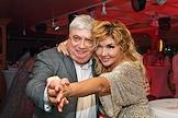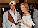 45-й Московский международный кинофестиваль (ММКФ). Ежегодная White Party и церемония вручения премии "Аванс" журнала "Кинорепортер" в ресторане "Чаiка". Певец Владимир Левкин (справа) и актриса Марина Ичетовкина на церемонии.