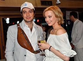45-й Московский международный кинофестиваль (ММКФ). Ежегодная White Party и церемония вручения премии "Аванс" журнала "Кинорепортер" в ресторане "Чаiка". Актер Павел Баршак (слева) и актриса Маруся Климова на церемонии.
