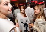 45-й Московский международный кинофестиваль (ММКФ). Ежегодная White Party и церемония вручения премии "Аванс" журнала "Кинорепортер" в ресторане "Чаiка". Справа налево: актрисы Паулина Врублевская, Анастасия Акатова и Елизавета Ищенко на церемонии.