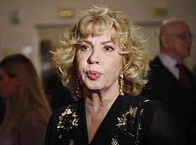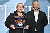Театральный фестиваль "Золотая маска". Торжественная церемония вручения Российской национальной театральной премии "Золотая маска 2023" на сцене Московского академического Музыкального театра К. С. Станиславского и В. И. Немировича-Данченко. Актриса Нина Усатова (слева) и художественный руководитель Государственного Московского Еврейского театра "Шалом" Олег Липовецкий во время церемонии.