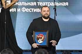 Театральный фестиваль "Золотая маска". Торжественная церемония вручения Российской национальной театральной премии "Золотая маска 2023" на сцене Московского академического Музыкального театра К. С. Станиславского и В. И. Немировича-Данченко. Актер Сергей Погосян на церемонии.