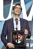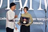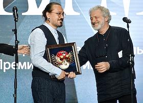 Театральный фестиваль "Золотая маска". Торжественная церемония вручения Российской национальной театральной премии "Золотая маска 2023" на сцене Московского академического Музыкального театра К. С. Станиславского и В. И. Немировича-Данченко. Художник Антон Болкунов (слева) во время церемонии.