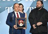 Театральный фестиваль "Золотая маска". Торжественная церемония вручения Российской национальной театральной премии "Золотая маска 2023" на сцене Московского академического Музыкального театра К. С. Станиславского и В. И. Немировича-Данченко. Директор Государственного академического театра имени Евгения Вахтангова Кирилл Крок (в центре) во время церемонии.
