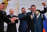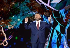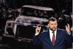 Федеральный Просветительский марафон Российского общества "Знание. Первые" в музейно-выставочном объединении (МВО) "Манеж". Временно исполняющий обязанности главы Донецкой Народной Республики (ДНР) Денис Пушилин во время выступления "Новые регионы России: жизнь на передовой".