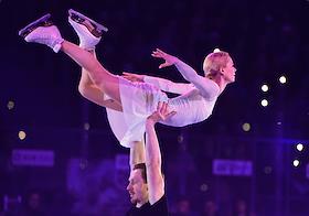 Ледовое шоу Этери Тутберидзе "Team Tutberidze. Чемпионы на льду" с участием звезд фигурного катания в Ледовом дворце "Сибирь". Фигуристы Татьяна Волосожар и Максим Траньков во время выступления.