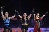 Ледовое шоу Этери Тутберидзе "Team Tutberidze. Чемпионы на льду" с участием звезд фигурного катания в Ледовом дворце "Сибирь". Слева направо: фигуристки Камила Валиева, Алина Загитова и Анна Щербакова во время после выступления.