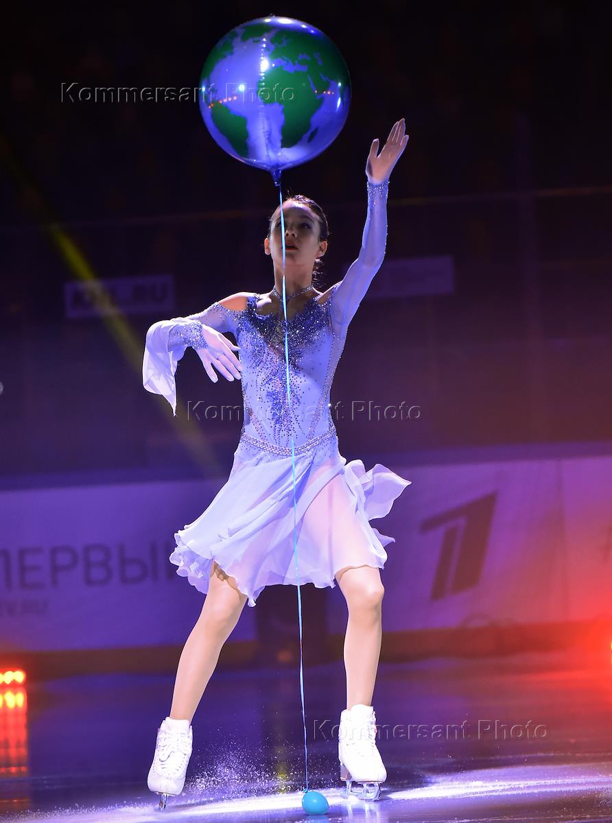 Ледовое шоу Этери Тутберидзе "Team Tutberidze. Чемпионы на льду" с участием звёзд фигурного катания в Ледовом дворце "Сибирь". Фигуристка Алина Загитова во время выступления.