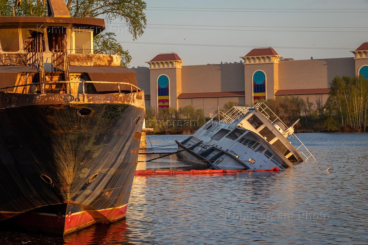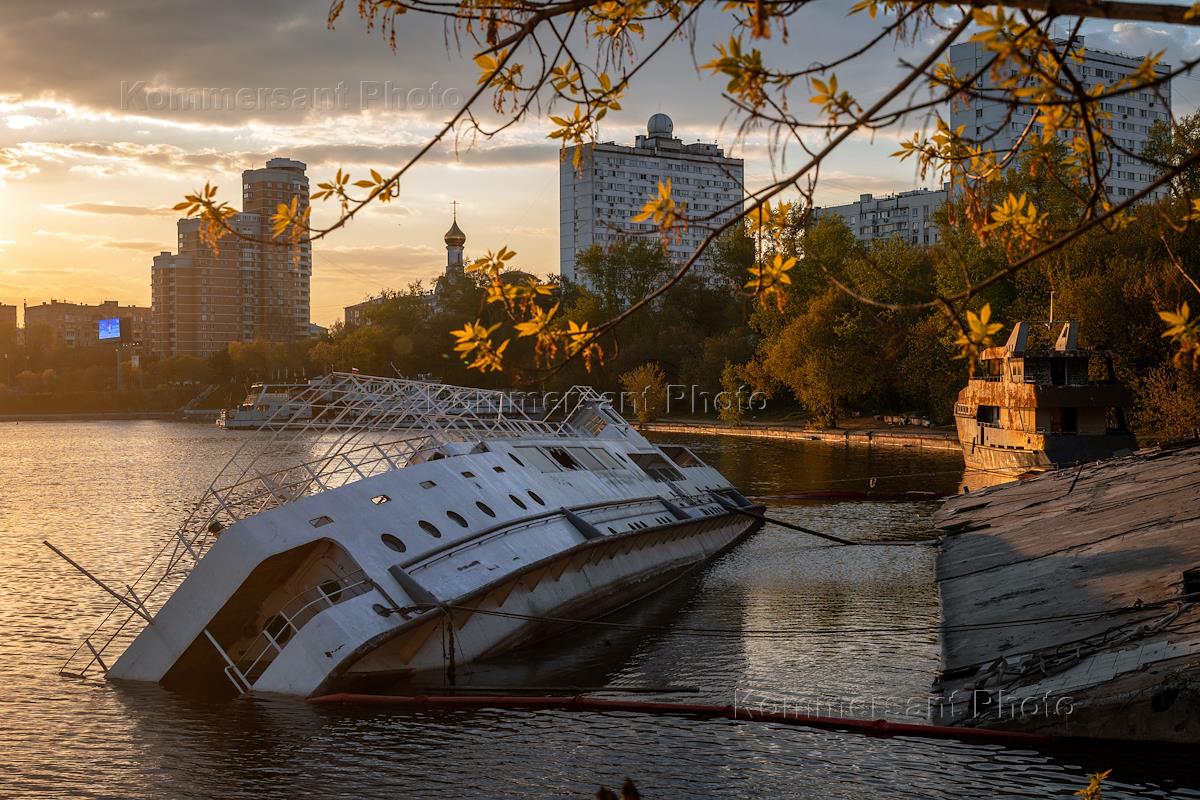 Жанровая фотография. Затонувшее судно "Агитатор" в акватории Кожуховского затона Москвы-реки.