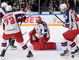 Continental Hockey League (KHL). Championship season 2022/23. Playoffs of the Gagarin Cup. The final. 5th match. Match between the teams "Ak Bars" (Kazan) - CSKA (Moscow) at the stadium "Tatneft-Arena". CSKA goalkeeper Adam Reideborn (center) during the match.