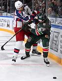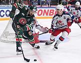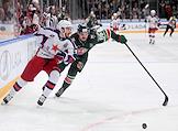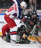 Continental Hockey League (KHL). Championship season 2022/23. Playoffs of the Gagarin Cup. The final. 5th match. Match between the teams "Ak Bars" (Kazan) - CSKA (Moscow) at the stadium "Tatneft-Arena". CSKA team player Artyom Sergeev (left) and Ak Bars team player Alexander Radulov (right) during the match.