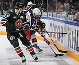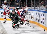 Continental Hockey League (KHL). Championship season 2022/23. Playoffs of the Gagarin Cup. The final. 5th match. Match between the teams "Ak Bars" (Kazan) - CSKA (Moscow) at the stadium "Tatneft-Arena". Ak Bars team player Nikita Lyamkin (right) and CSKA team player Anton Slepyshev (left) during the match.