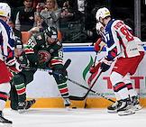 Continental Hockey League (KHL). Championship season 2022/23. Playoffs of the Gagarin Cup. The final. 5th match. Match between the teams "Ak Bars" (Kazan) - CSKA (Moscow) at the stadium "Tatneft-Arena". Ak Bars team player Kirill Panyukov (left) and CSKA team player Fredrik Klasson (right) during the match.