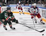 Continental Hockey League (KHL). Championship season 2022/23. Playoffs of the Gagarin Cup. The final. 5th match. Match between the teams "Ak Bars" (Kazan) - CSKA (Moscow) at the stadium "Tatneft-Arena". CSKA team player Prokhor Poltapov (center) during the match.