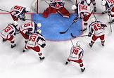 Continental Hockey League (KHL). Championship season 2022/23. Playoffs of the Gagarin Cup. The final. 5th match. Match between the teams "Ak Bars" (Kazan) - CSKA (Moscow) at the stadium "Tatneft-Arena". CSKA team players during the match.