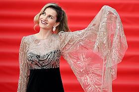Closing ceremony of the 45th Moscow International Film Festival (MIFF) at the Moscow Musical Theatre. Actress, singer Yevgenia Malakhova on the red carpet before the ceremony.