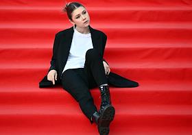 Closing ceremony of the 45th Moscow International Film Festival (MIFF) at the Moscow Musical Theatre. Actress Olesya Fattakhova on the red carpet before the ceremony.