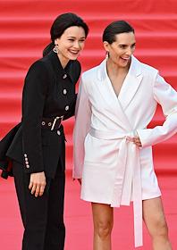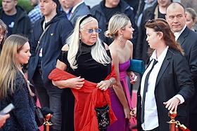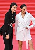 Closing ceremony of the 45th Moscow International Film Festival (MIFF) at the Moscow Musical Theatre. Tatyana Mikhalkova (right), president of the Russian Silhouette Charitable Foundation, on the red carpet before the ceremony.