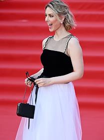 Closing ceremony of the 45th Moscow International Film Festival (MIFF) at the Moscow Musical Theatre. Blogger Maria Pogrebnyak on the red carpet before the ceremony.