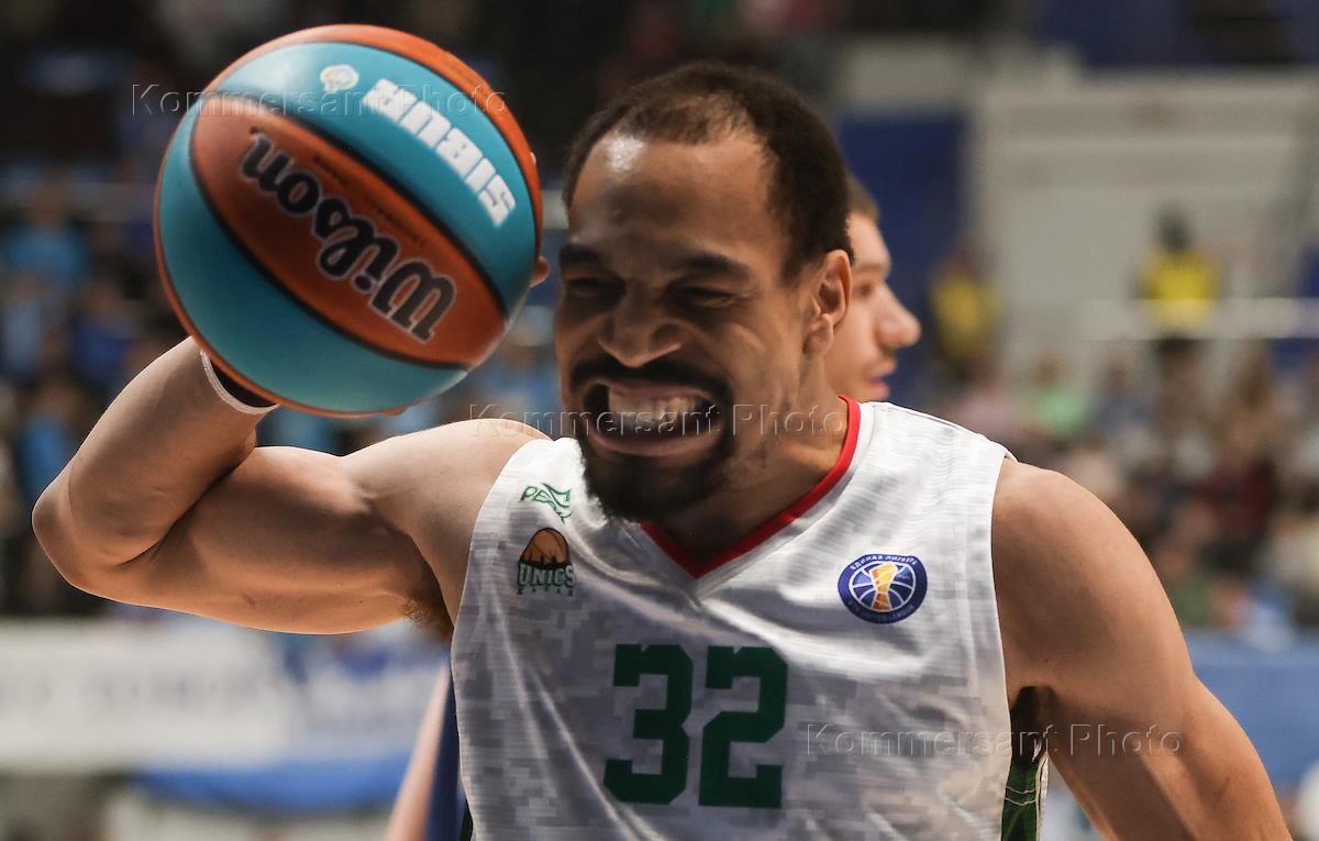 Единая лига ВТБ 2022/2023. 1/2 финала. Матч между командами "Зенит" (Санкт-Петербург) и УНИКС (Казань) на стадионе "Сибур Арена". Игрок команды УНИКС Джален Рейнольдс во время матча.