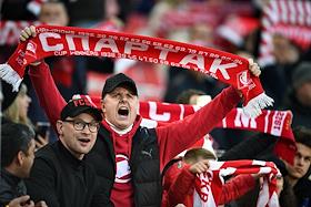 Russian Premier League (RPL). MIR - Russian Football Championship 2022/2023. 25th round. Match between the teams "Spartak" (Moscow) - "Rostov" (Rostov-on-Don) at the stadium "Otkritie Bank Arena". Fans of the team "Spartak" on the podium during the match.