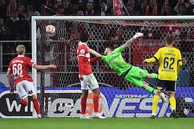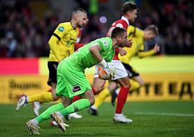 Russian Premier League (RPL). MIR - Russian Football Championship 2022/2023. 25th round. Match between the teams "Spartak" (Moscow) - "Rostov" (Rostov-on-Don) at the stadium "Otkritie Bank Arena". Rostov goalkeeper Sergei Pesyakov during the match.