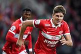 Russian Premier League (RPL). MIR - Russian Football Championship 2022/2023. 25th round. Match between the teams "Spartak" (Moscow) - "Rostov" (Rostov-on-Don) at the stadium "Otkritie Bank Arena". Rostov team player Nikolai Komlichenko (right) during the match.