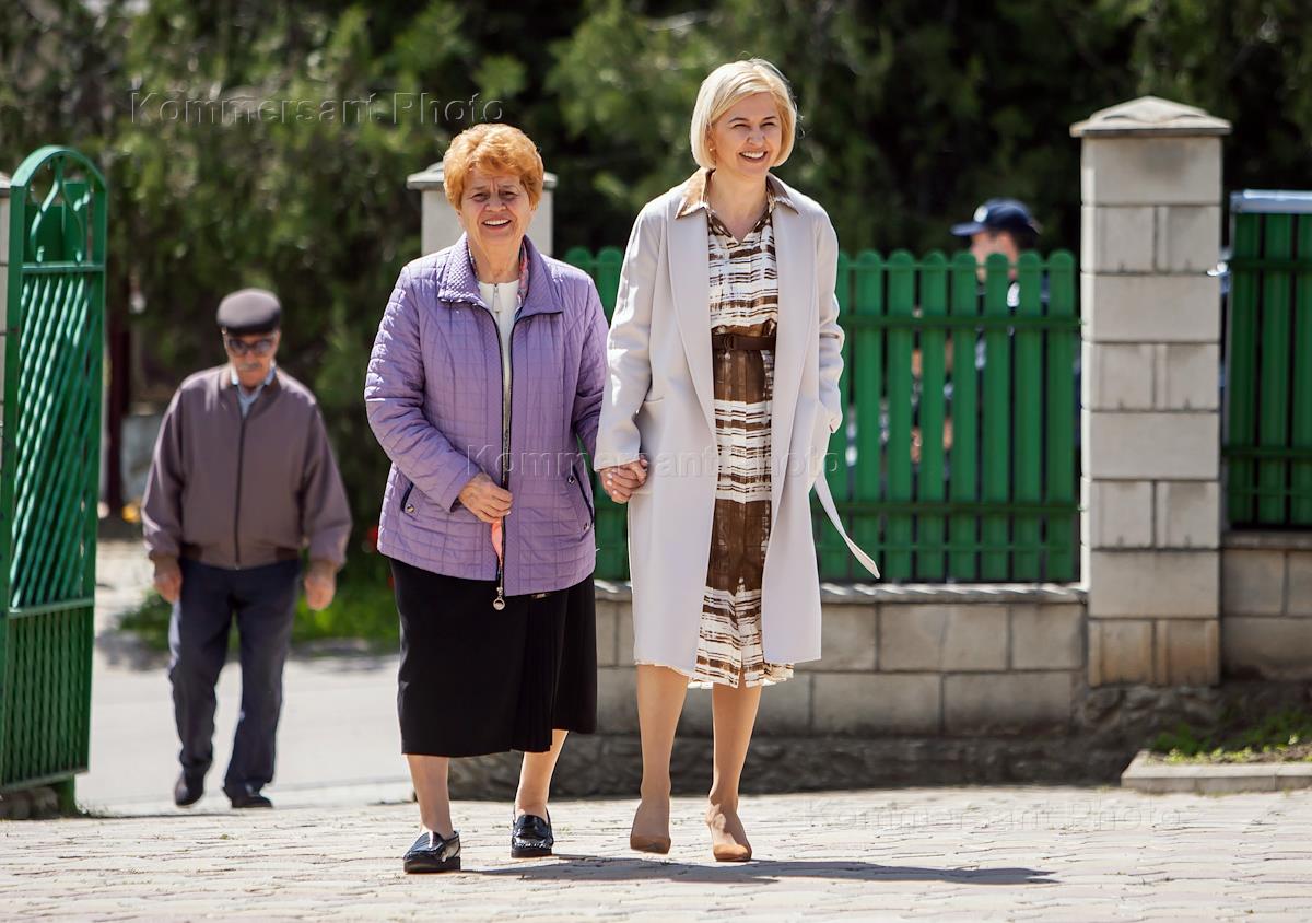 Выборы башкана (главы администрации) Гагаузской автономии Молдавии. Башкан Гагаузской автономии Ирина Влах с мамой перед началом голосования.