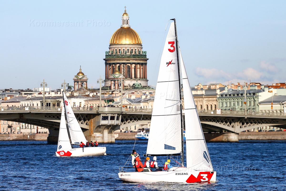 Церемония открытия Летнего туристического сезона в Санкт-Петербурге 2023. Регата парусных судов у Благовещенского моста в акватории реки Невы.