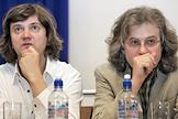 Руководство Московского академического музыкального театра имени К.С.Станиславского и Вл.И.Немировича-Данченко: дирижер Феликс Коробов (слева) и художественный руководитель оперной труппы Александр Титель (справа) на пресс-конференции, посвященной открытию 85 - го театрального сезона.