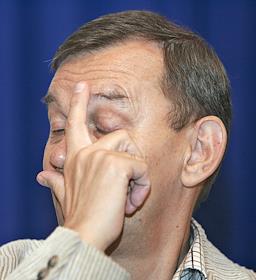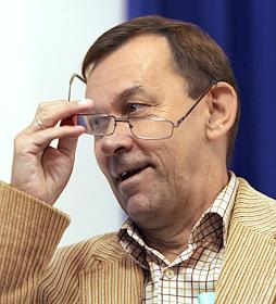 Хореограф Михаил Лавровский на пресс-конференции, посвященной открытию 85 - го театрального сезона в Московском академическом музыкальном театре им.К.С.Станиславского и Вл.И.Немировича-Данченко.