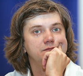 Дирижер Феликс Коробов на пресс-конференции, посвященной открытию 85 - го театрального сезона в Московском академическом музыкальном театре им.К.С.Станиславского и Вл.И.Немировича-Данченко.