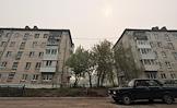 Ситуация в Режевском городском округе, где из-за пожаров объявлен режим чрезвычайной ситуации. Жанровая фотография. Автомобиль на фоне пятиэтажный жилых домов.