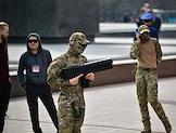 Празднование 78-й годовщины Победы в Великой Отечественной войне. Жанровая фотография. Жители во время ознакомления с моделями боевого оружия в рамках празднования.