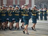 Празднование Дня Победы. Парад, посвященный 78-й годовщине Победы в Великой Отечественной войне, на площади Ленина. Женщины-военнослужащие во время парада.