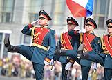 Празднование Дня Победы. Парад, посвященный 78-й годовщине Победы в Великой Отечественной войне, на площади Ленина. Военнослужащие во время парада.