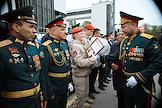 Военный парад войск Ростовского гарнизона, посвященный 78-й годовщине Победы в Великой Отечественной войне, на Театральной площади. Заместитель командующего войсками Южного военного округа Алексей Авдеев (справа) перед началом парада.
