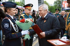 Военный парад войск Ростовского гарнизона, посвященный 78-й годовщине Победы в Великой Отечественной войне, на Театральной площади. Губернатор Ростовской области Василий Голубев (слева) перед началом парада.