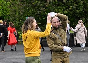 Праздничные мероприятия, посвященные 78-й годовщине Победы в Великой Отечественной войне, в Парке Горького. Жанровая фотография.