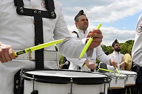 Праздничные мероприятия, посвященные 78-й годовщине Победы в Великой Отечественной войне, в Парке Горького. Жанровая фотография. Ансамбль барабанщиков во время мероприятий.