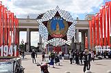 Виды Москвы во время празднованных мероприятий, посвященных 78-й годовщине Победы в Великой Отечественной войне. Праздничное убранство Парка Горького. Жанровая фотография.
