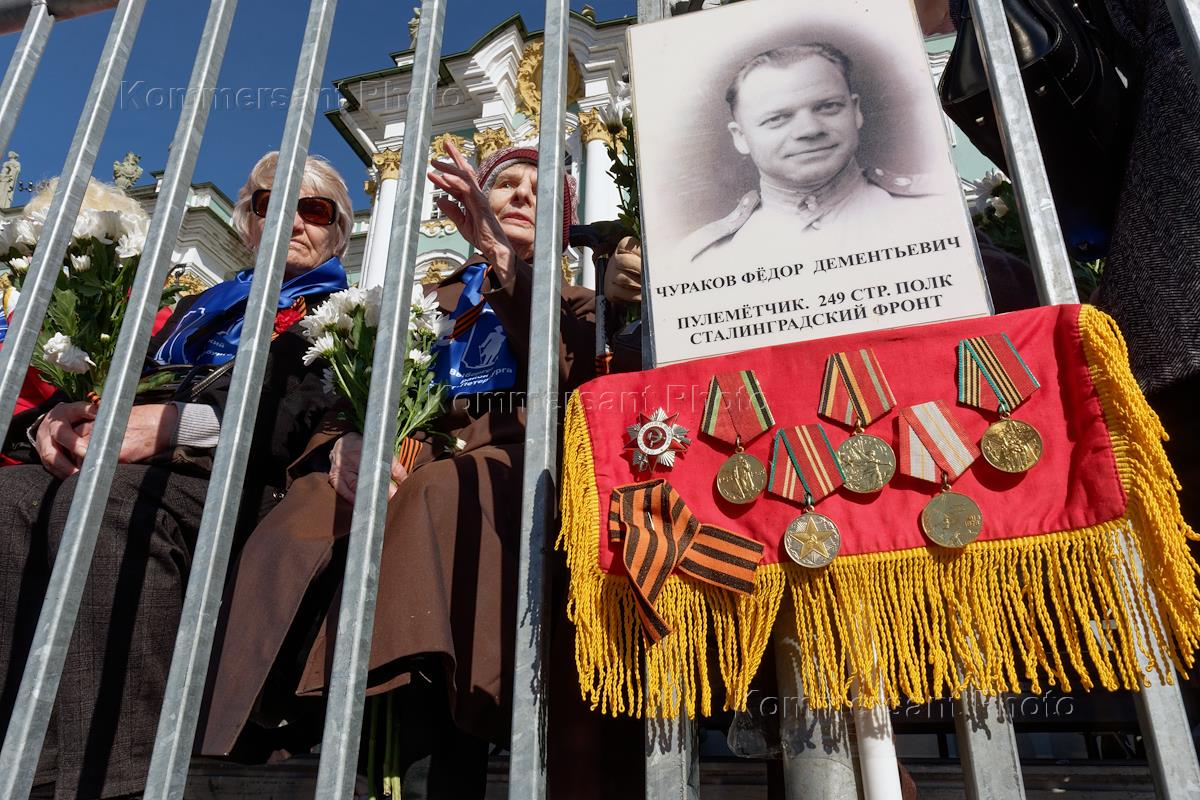 Военный парад, посвященный 78-ой годовщине Победы в Великой Отечественной войне, прошел на Дворцовой площади. Зрители после парада.
