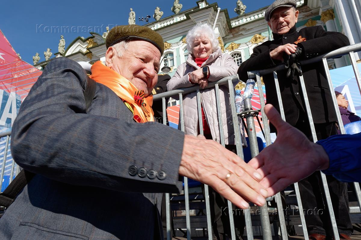 Военный парад, посвященный 78-ой годовщине Победы в Великой Отечественной войне, прошел на Дворцовой площади. Зрители после парада.