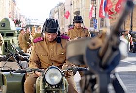 Военный парад, посвященный 78-ой годовщине Победы в Великой Отечественной войне, прошел на Дворцовой площади. Участники театрализованной части парада.