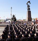 Военный парад, посвященный 78-ой годовщине Победы в Великой Отечественной войне, прошел на улице Светланской во Владивостоке. Военнослужащие во время парада.