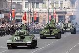 Военный парад, посвященный 78-ой годовщине Победы в Великой Отечественной войне, прошел на улице Светланской во Владивостоке. Проход военной техники во время парада. Танки Т-34-76, Т-34-85 и самоходная артиллерийская установка ИСУ-122.