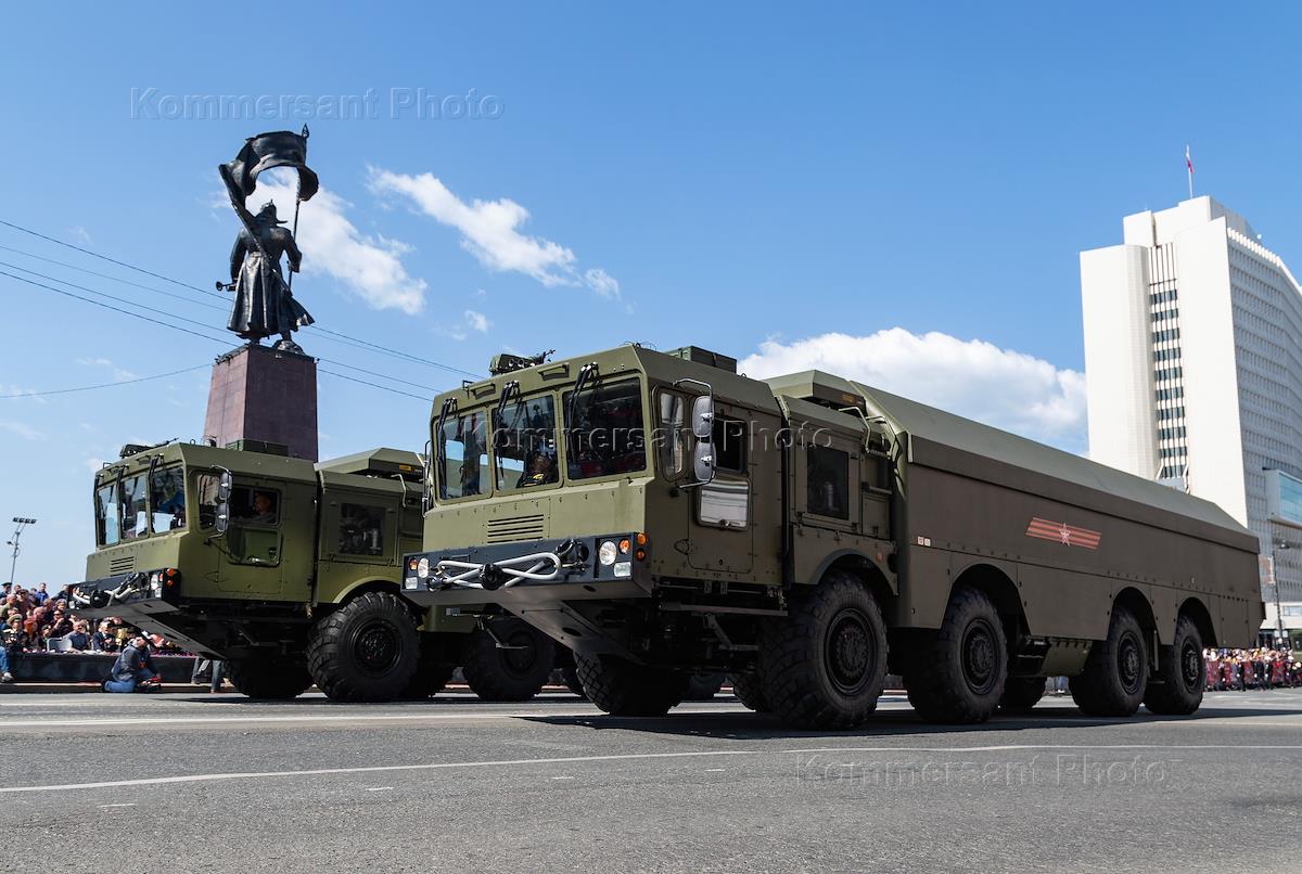Военный парад, посвященный 78-ой годовщине Победы в Великой Отечественной войне, прошел на улице Светланской во Владивостоке. Проход военной техники во время парада.