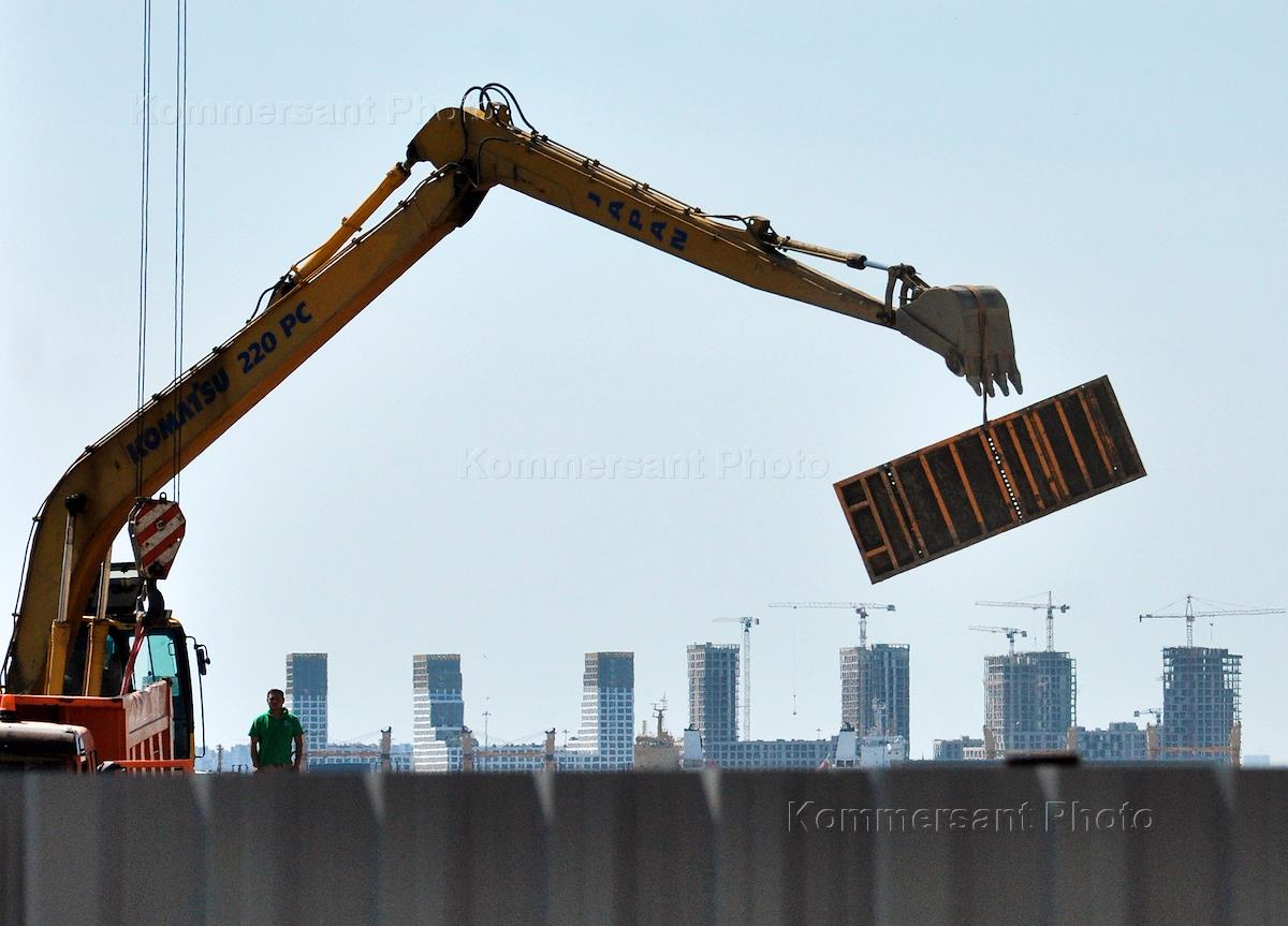 Views of St. Petersburg. Genre photography. Construction site on the coast of the Gulf of Finland.