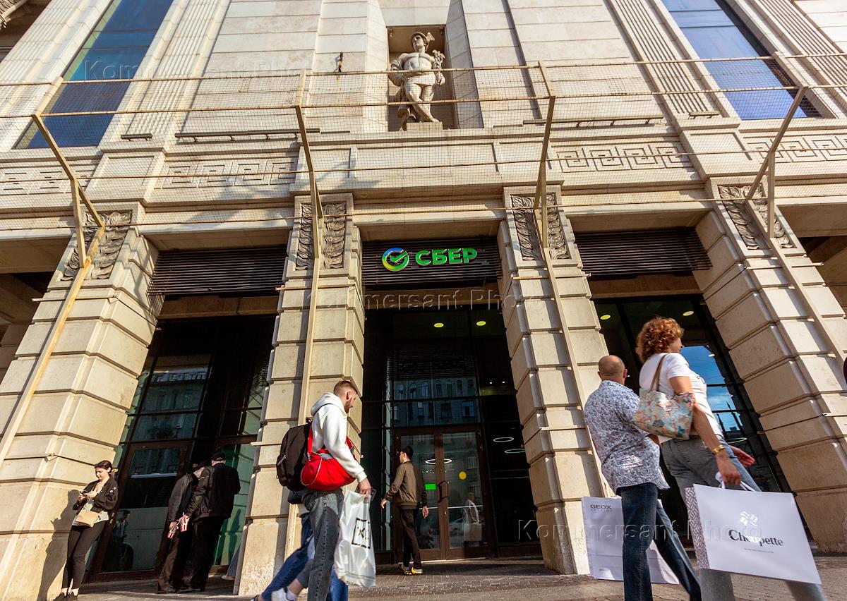 Виды Санкт-Петербурга. Жанровая фотография. Вывеска офиса Сбербанка нового формата в торгово-развлекательном центре "Галерея".