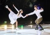 Концерт на льду "Любимые песни о главном" в постановке Ильи Авербуха в честь 78-й годовщины Победы в Ледовом дворце. Фигуристы Екатерина Миронова и Евгений Устенко во время выступления.