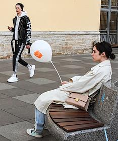 Виды Санкт-Петербурга. Жанровая фотография. Жанровая фотография. Девушка с воздушным шариком сидит на скамейке.